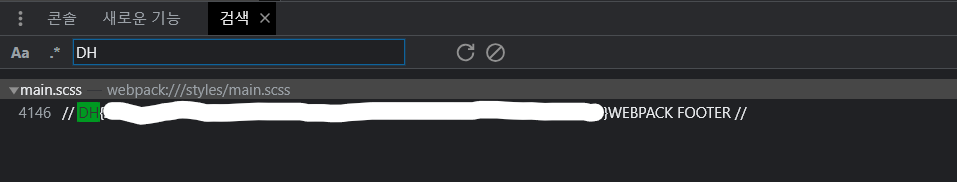파일마다 들어가서 일일히 검사하기는 힘들기에 Ctrl+Shift+F를 통한 전체검색 혹은 sources 탭 아래의 검색 기능을 활용하여 DH를 검색해 보았다.