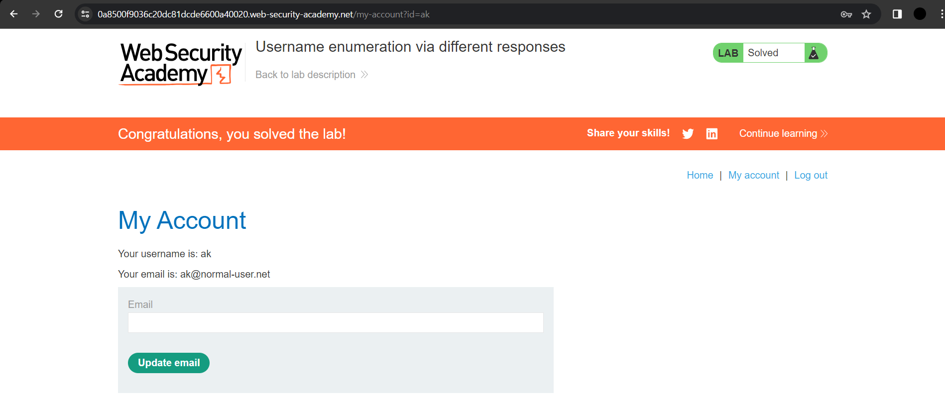 2. I went back to the "My account" page and the LAB was resolved.