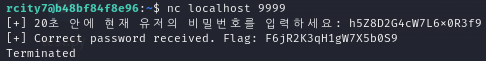 4. I used "netcat" to access that port, and putted the password.